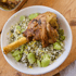Iranischer Reis mit Berberitzen und Safran, Hähnchenschenkel in Sauce